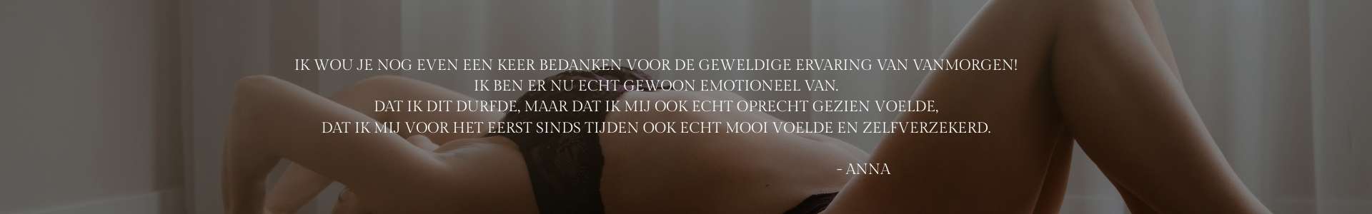 Na een heel persoonlijk ontwikkel traject nog één ultieme stap met een boost aan zelfvertrouwen gezet. Dat ik dit durfde, maar dat ik mij ook oprecht gezien voelde, dat ik mij voor het eerst sinds tijden ook echt mooi en zelfverzekerd voelde. Heel speciaal, vooral dankzij de geweldige fotografe. Ze geeft je vertrouwen, tips en in alle rust om tot werkelijk prachtige beelden te komen. Zonder Janne was dit niet gelukt en had ik niet zo’n vertrouwd en goed gevoel kunnen hebben.